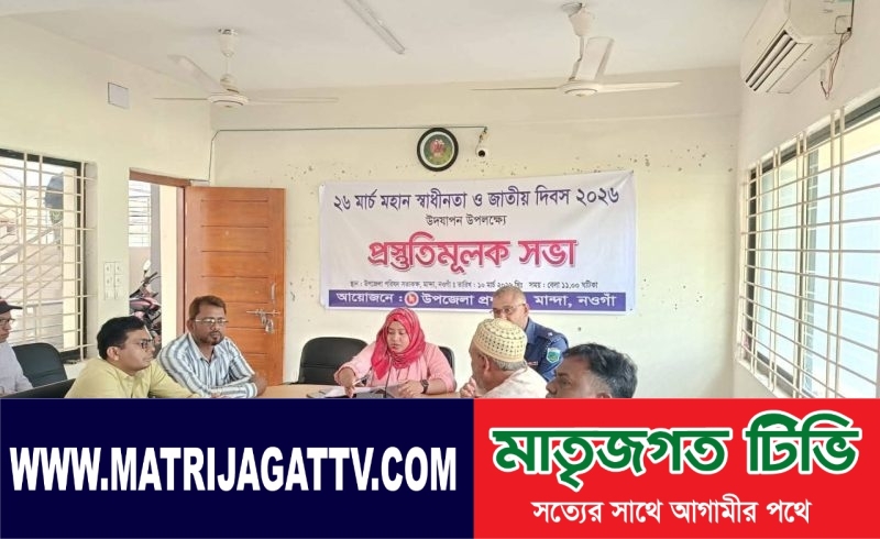 মান্দায় মহান স্বাধীনতা ও জাতীয় দিবস উপলক্ষে প্রস্তুতিমূলক সভা এম এ মজিদ নওগাঁঃ নওগাঁর মান্দা উপজেলায় ২৬ মার্চ মহান স্বাধীনতা ও জাতীয় দিবস ২০২৬ উদযাপন উপলক্ষে প্রস্তুতিমূলক সভা অনুষ্ঠিত হয়েছে। সোমবার (১০ মার্চ) বেলা ১১টায় উপজেলা পরিষদ সভাকক্ষে উপজেলা প্রশাসনের আয়োজনে এ সভা অনুষ্ঠিত হয়। সভায় সভাপতিত্ব করেন উপজেলা নির্বাহী কর্মকর্তা আখতার জাহান সাথী। সভায় দিবসটি যথাযথ মর্যাদায় উদযাপনের লক্ষ্যে বিভিন্ন কর্মসূচি নিয়ে আলোচনা করা হয়। কর্মসূচির মধ্যে রয়েছে সূর্যোদয়ের সাথে সাথে জাতীয় পতাকা উত্তোলন, পুষ্পস্তবক অর্পণ, কুচকাওয়াজ, আলোচনা সভা, সাংস্কৃতিক অনুষ্ঠানসহ বিভিন্ন আয়োজন। এ সময় উপজেলা প্রশাসনের বিভিন্ন দপ্তরের কর্মকর্তা, আইনশৃঙ্খলা বাহিনীর সদস্য, শিক্ষা প্রতিষ্ঠানের প্রতিনিধি এবং গণ্যমান্য ব্যক্তিরা উপস্থিত ছিলেন। সভায় বক্তারা বলেন, মহান স্বাধীনতা ও জাতীয় দিবস বাঙালি জাতির গৌরবের দিন। দিবসটি যথাযোগ্য মর্যাদায় পালনের জন্য সবাইকে সম্মিলিতভাবে কাজ করার আহ্বান জানান তারা।