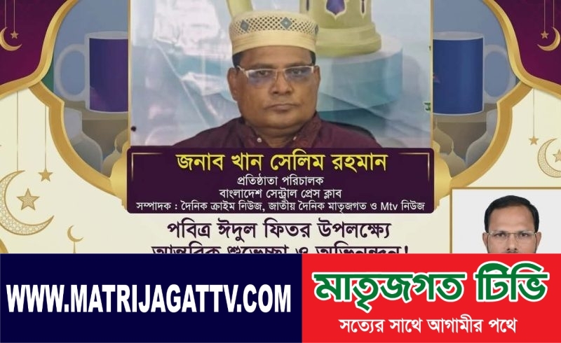 জাতীয় দৈনিক মাতৃজগত সাংবাদিকতা শুধু একটি পেশা নয়; এটি একটি আপসহীন সংগ্রামের নাম। আর এই সংগ্রামে সামনের সারিতে নেতৃত্ব দিয়ে যাচ্ছেন জনাব খান সেলিম রহমান। বাংলাদেশের গণমাধ্যম জগতে তিনি এক অনন্য নাম, এক উজ্জ্বল নক্ষত্র। তিনি শুধুমাত্র বাংলাদেশ সেন্ট্রাল প্রেস ক্লাবের প্রতিষ্ঠাতা পরিচালকই নন, বরং ‘দৈনিক ক্রাইম নিউজ’, ‘জাতীয় দৈনিক মাতৃজগত’ এবং ‘এম টিভি’-র মতো প্রভাবশালী গণমাধ্যমের শ্রদ্ধেয় সম্পাদকও বটে। জনাব খান সেলিম রহমান নিষ্ঠা, সততা এবং সাহসিকতার এক অনন্য প্রতীক। দীর্ঘ কয়েক দশকের সাংবাদিকতা জীবনে তিনি সর্বদা সত্যের পথে অবিচল থেকেছেন। অন্যায়ের বিরুদ্ধে তাঁর কলম কখনো থামে নি। তাঁর সম্পাদনায় ‘দৈনিক ক্রাইম নিউজ’ অপরাধ জগতের ভেতরের খবর জনসাধারণের সামনে তুলে ধরে, যা সমাজ থেকে অপরাধ দমনে গুরুত্বপূর্ণ ভূমিকা পালন করছে। একইভাবে ‘জাতীয় দৈনিক মাতৃজগত’ দেশের রাজনৈতিক, সামাজিক ও অর্থনৈতিক খবরের এক নির্ভরযোগ্য উৎস হিসেবে নিজেকে প্রতিষ্ঠিত করেছে। খান সেলিম রহমান শুধু একজন সফল সম্পাদকই নন, তিনি একজন দক্ষ সংগঠকও বটে। বাংলাদেশ সেন্ট্রাল প্রেস ক্লাবের প্রতিষ্ঠাতা পরিচালক হিসেবে তিনি সাংবাদিকদের ঐক্যবদ্ধ করতে এবং তাদের অধিকার আদায়ে অগ্রণী ভূমিকা পালন করছেন। তাঁর দিকনির্দেশনায় প্রেস ক্লাব আজ সাংবাদিকদের একটি শক্তিশালী ও শ্রদ্ধেয় প্রতিষ্ঠানে পরিণত হয়েছে। তাঁর অধীনে কাজ করার অভিজ্ঞতা সত্যিই অতুলনীয়। তিনি প্রতিটি সাংবাদিকের প্রতিভা চিনতে পারেন এবং তাদের সঠিক পথে পরিচালিত করেন। তাঁর অনুপ্রেরণায় অনেক তরুণ সাংবাদিক আজ জাতীয় পর্যায়ে গুরুত্বপূর্ণ অবদান রাখছেন। পবিত্র ঈদুল ফিতরের শুভেচ্ছা এই পবিত্র উৎসবের দিনে, আমি মোঃ জাহাঙ্গীর আলম রাজু, সিনিয়র রিপোর্টার, জাতীয় দৈনিক মাতৃজগত ও এম টিভি, আমাদের শ্রদ্ধেয় সম্পাদক ও পথপ্রদর্শক জনাব খান সেলিম রহমানকে জানাই পবিত্র ঈদুল ফিতরের আন্তরিক শুভেচ্ছা ও অভিনন্দন। ঈদ মোবারক! আল্লাহ তাআলা আপনাকে দীর্ঘায়ু করুন, সুস্থ রাখুন এবং সর্বদা সত্যের পথে অবিচল থাকার তৌফিক দান করুন। আপনার নেতৃত্ব ও দিকনির্দেশনায় আমরা সাংবাদিকতার জগতে আরও দূর এগিয়ে যেতে পারব, ইনশাআল্লাহ। সারাদেশের গণমাধ্যমকর্মী এবং দেশবাসীকেও জানাই পবিত্র ঈদুল ফিতরের শুভেচ্ছা। ঈদ আপনাদের জীবনে বয়ে আনুক অনাবিল আনন্দ ও সুখ। শুভেচ্ছান্তে, মোঃ জাহাঙ্গীর আলম রাজু সিনিয়র রিপোর্টার জাতীয় দৈনিক মাতৃজগত