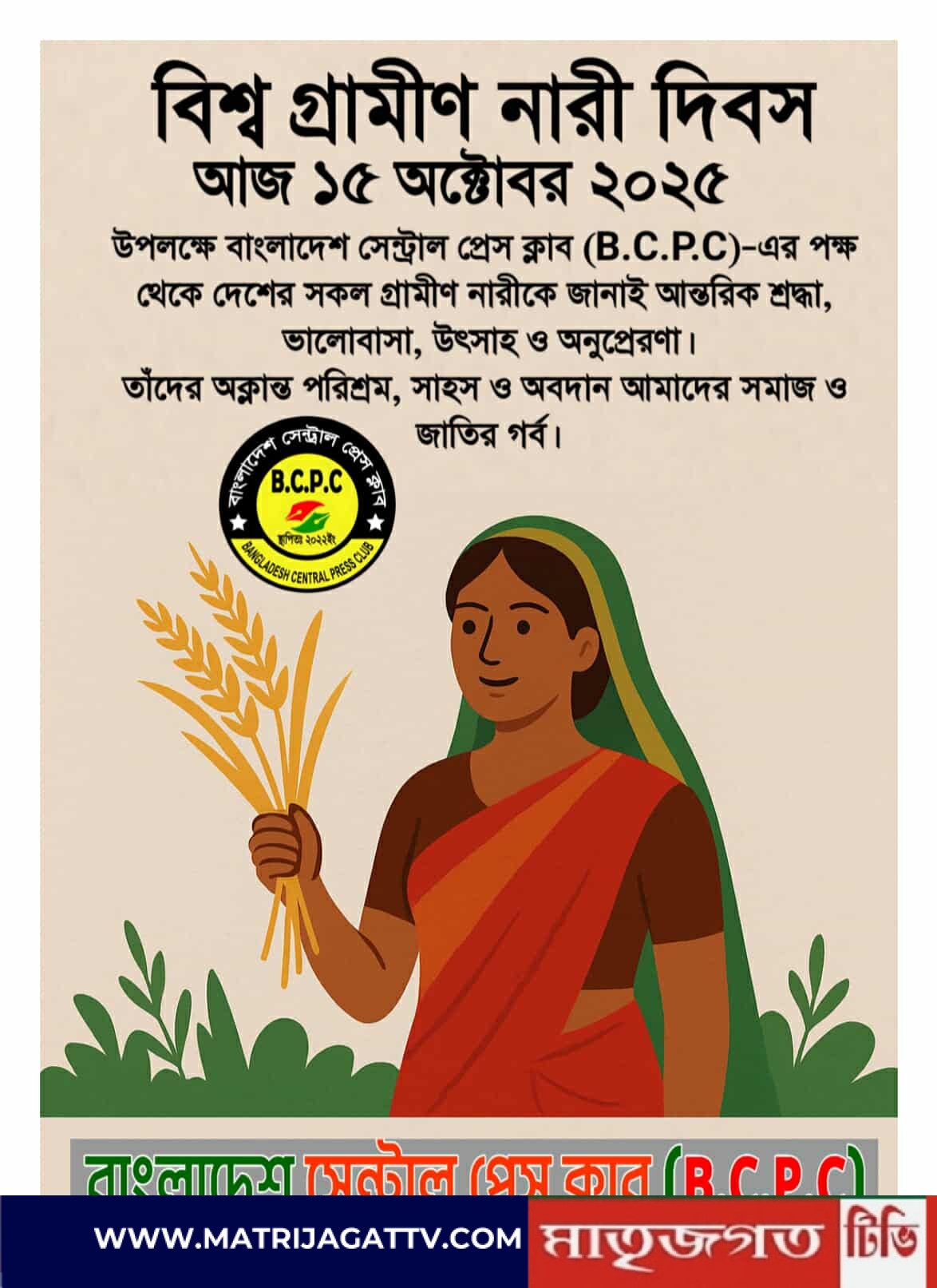 আজ ১৫ অক্টোবর বিশ্ব গ্রামীণ নারী দিবস।