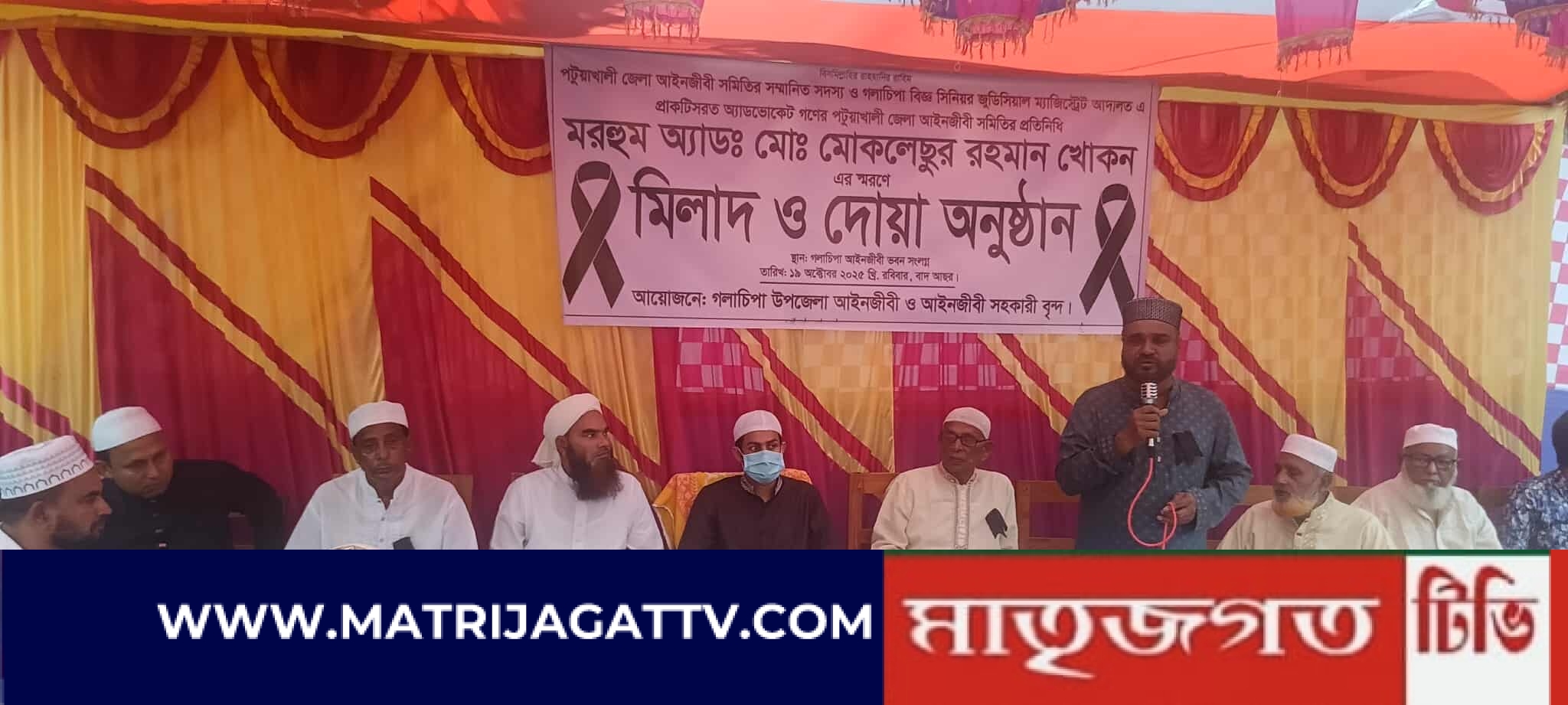 গলাচিপায় এ্যাড. মোকলেছুর রহমান এর মৃত্যুেত আইনজীবীদের দোয়া মাহফিল অনুষ্ঠিত