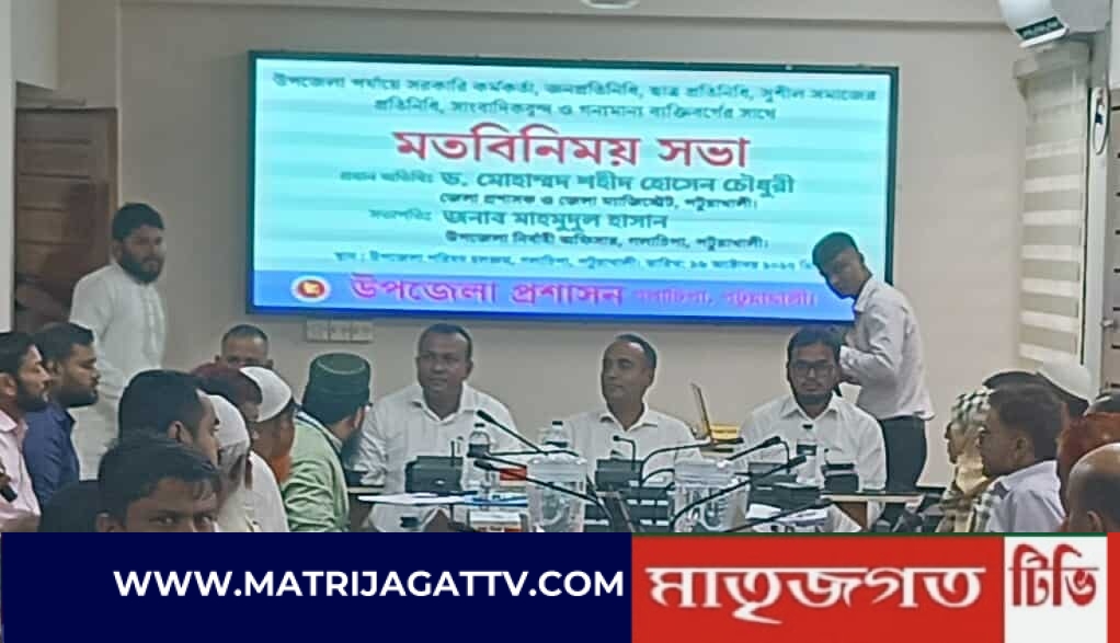 পটুয়াখালীর গলাচিপায় উপজেলা পর্যায়ের সরকারি কর্মকর্তা, জনপ্রতিনিধি, সুশীল সমাজের প্রতিনিধি, ছাত্র প্রতিনিধি, শিক্ষক, সাংবাদিক এবং গন্যমান্য ব্যক্তিবর্গের সঙ্গে জেলা প্রশাসক ও জেলা ম্যাজিস্ট্রেট ড. মোহাম্মদ শহীদ হোসেন চৌধুরীর মতবিনিময় সভা অনুষ্ঠিত হয়েছে।