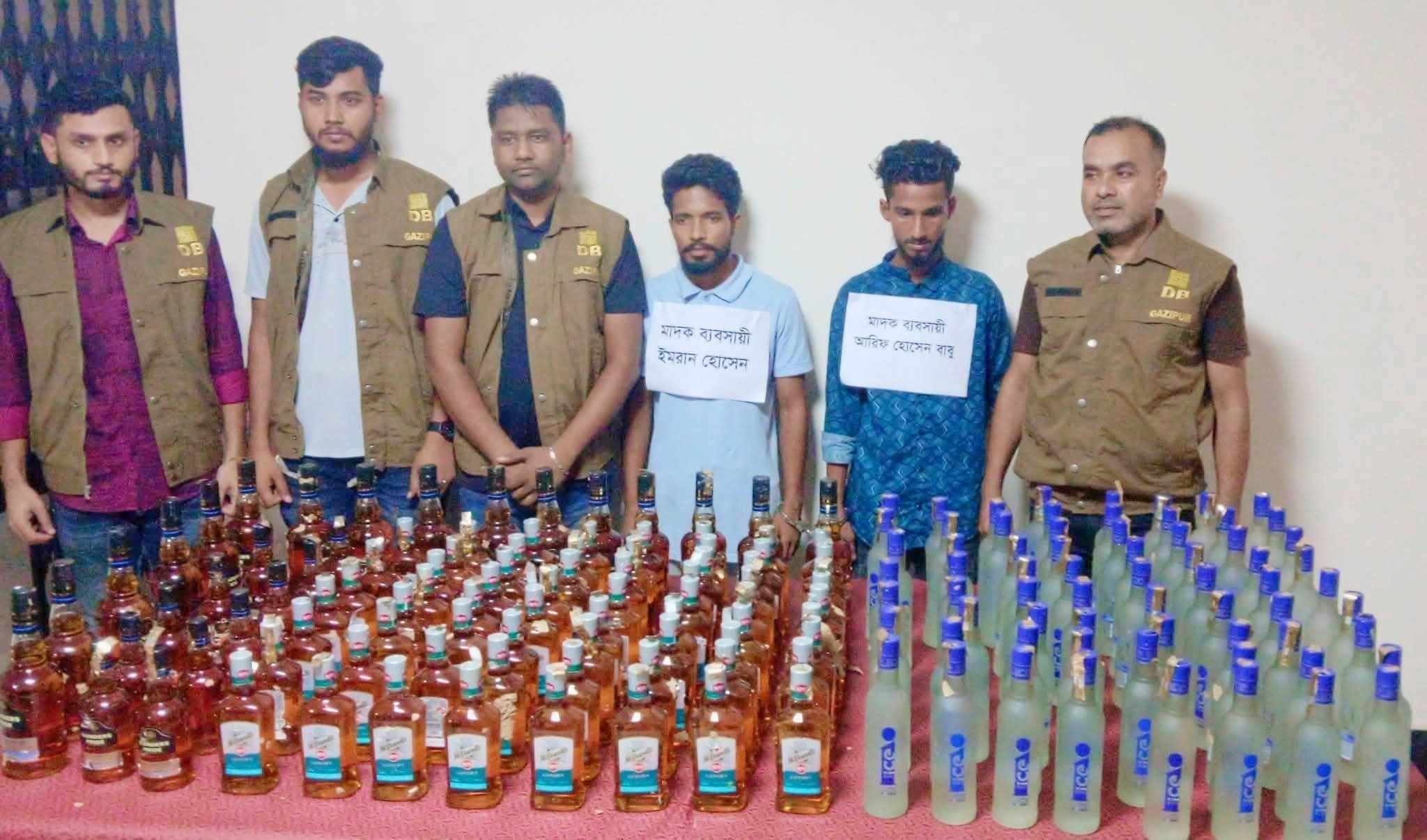 এর আগে, বেলা ১১টার দিকে গোপন সংবাদের ভিত্তিতে জেলা গোয়েন্দা পুলিশের একটি দল শ্রীপুর উপজেলার জৈনা বাজার ফুটওভার ব্রিজের নিচ থেকে ওইসব মদসহ ২জনকে আটক করে।