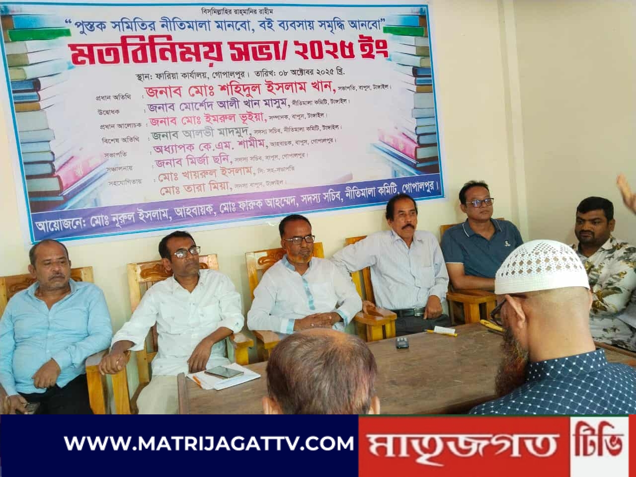 "পুস্তক সমিতির নীতিমালা মানবো,বই ব্যবসার সমৃদ্ধ আনবো"-এই শ্লোগানকে সামনে রেখে বাংলাদেশ পুস্তক প্রকাশক বিক্রেতা সমিতি টাঙ্গাইল জেলার গোপালপুর উপজেলায় ফারিয়া কার্যালয়ে মত বিনিময় সভা অনুষ্ঠিত হয়েছে।