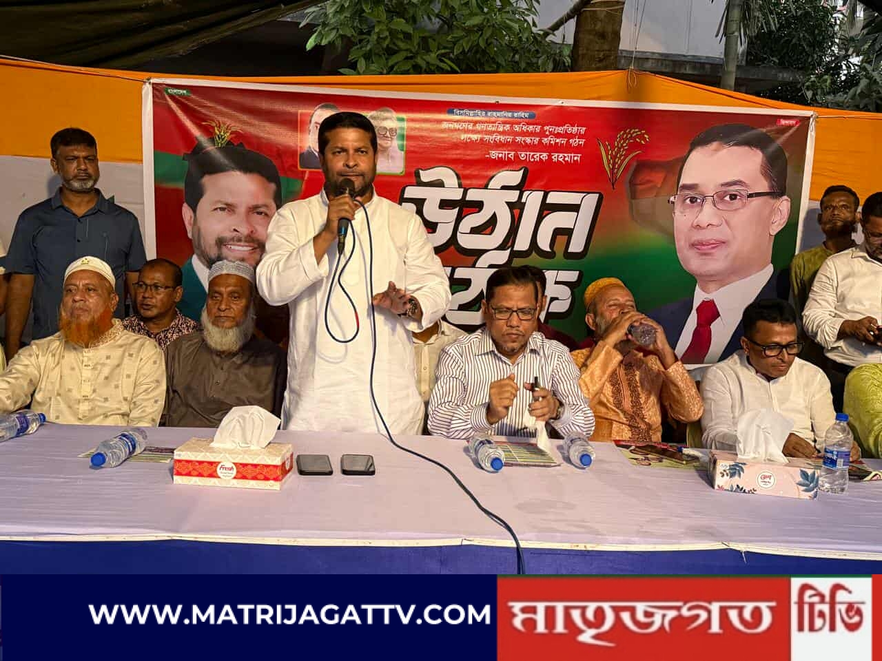 তিনি আরও বলেন, “আমাদের নেতা ও আগামীর রাষ্ট্রনায়ক তারেক রহমান গণতন্ত্রের জন্য আজও সংগ্রাম করে যাচ্ছেন। নিজের মায়ের জানাজায়ও অংশ নিতে পারেননি এটাই তার ত্যাগের প্রমাণ। বিদেশে থেকেও তিনি ফ্যাসিস্ট সরকারের বিরুদ্ধে লড়াই চালিয়ে যাচ্ছেন।”