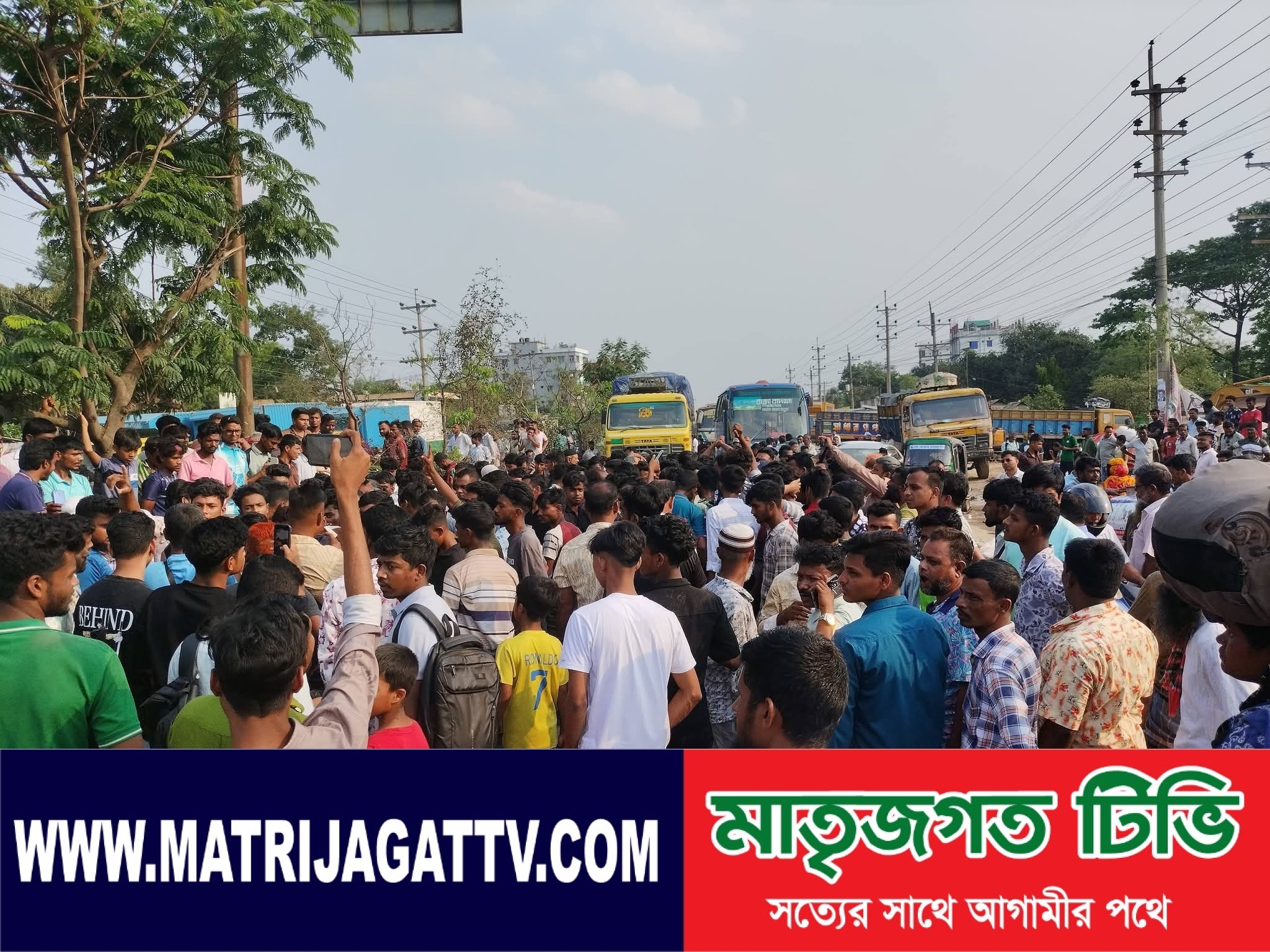 ঢাকা – ময়মনসিংহ মহাসড়ক অবরোধ করে বিক্ষোভ করছেন ট্রাক ও কাভার্ড ভ্যানের চালক-হেলপাররা