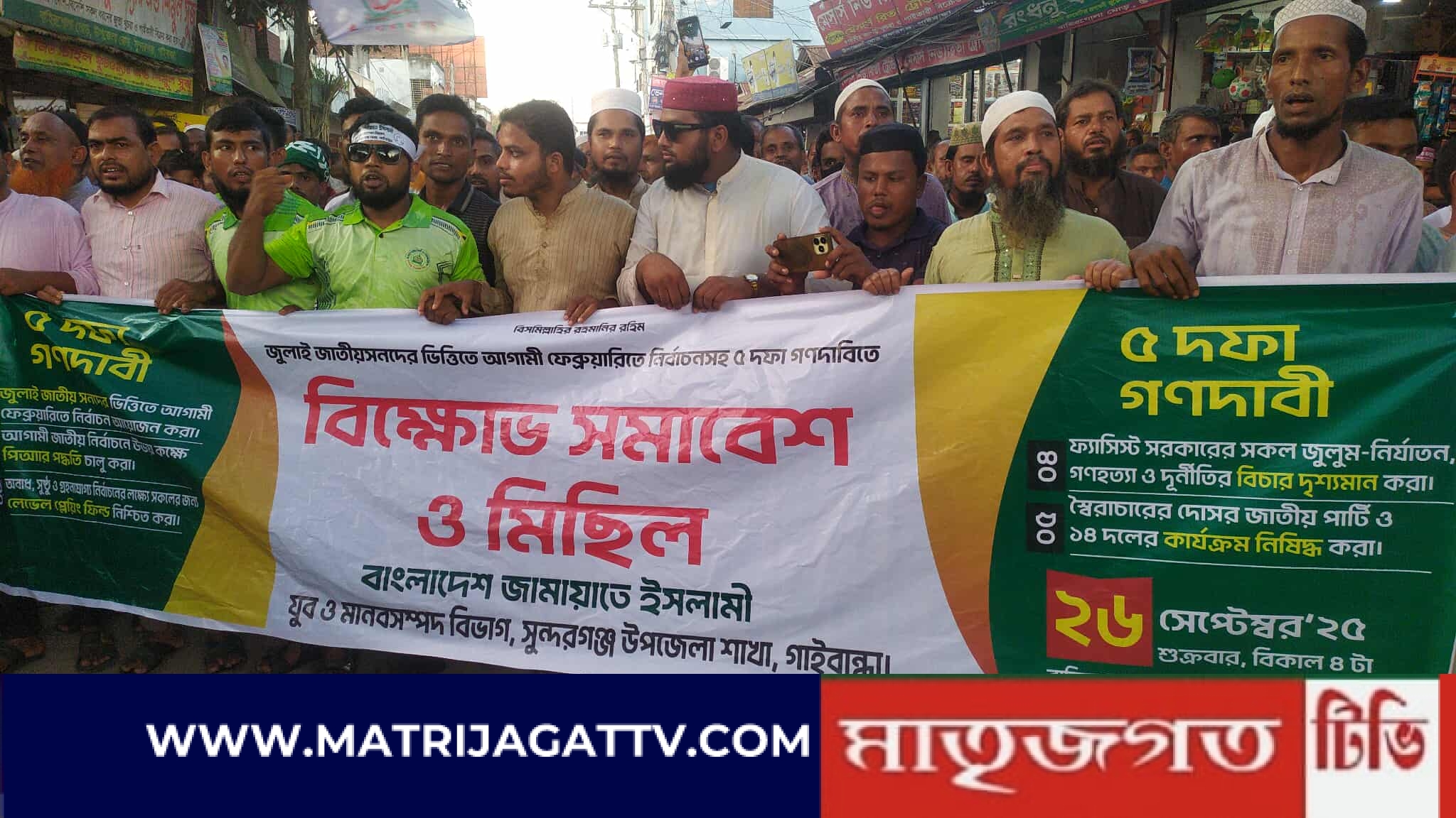 পাঁচ দফা দাবিতে উত্তাল সুন্দরগঞ্জ: জামায়াতের মিছিল-সমাবেশ