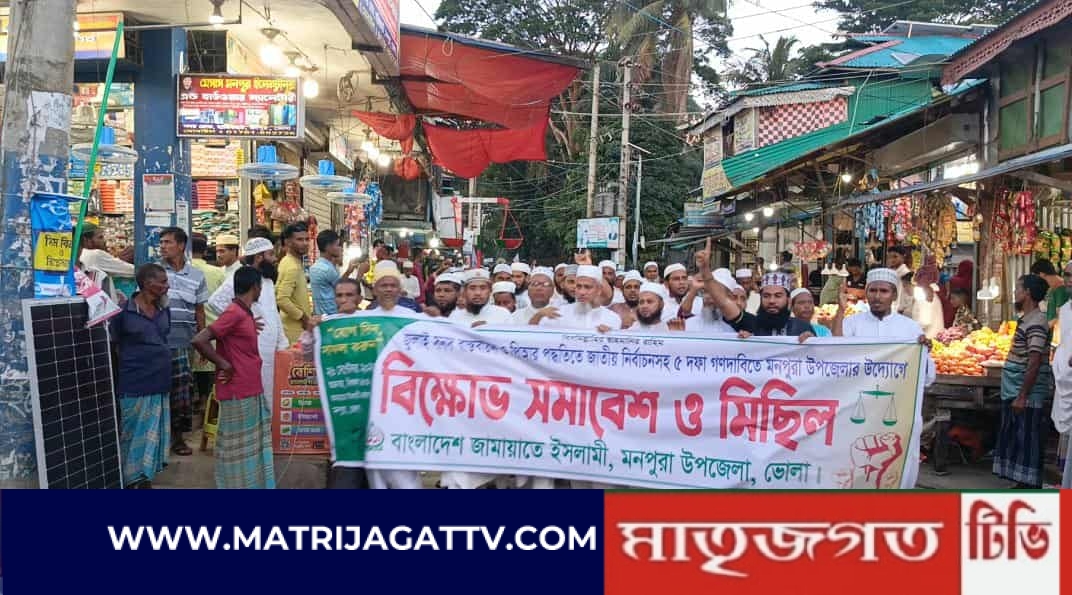 মনপুরায় ৫ দফা দাবিতে জামাত ইসলামির সমাবেশ ও বিক্ষোভ মিছিল।