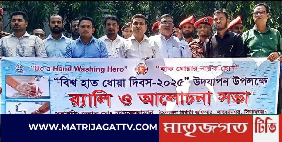 সিরাজগঞ্জের শাহজাদপুরে সোমবার প্রাণবন্ত আয়োজনের মধ্য দিয়ে উদযাপিত হলো “বিশ্ব হাত ধোয়া দিবস-২০২৫”। উপজেলা প্রশাসন ও জনস্বাস্থ্য প্রকৌশল অধিদপ্তরের আয়োজনে উপজেলা পরিষদ চত্বরে অনুষ্ঠিত হয় বর্ণাঢ্য র্যালি ও আলোচনা সভা।