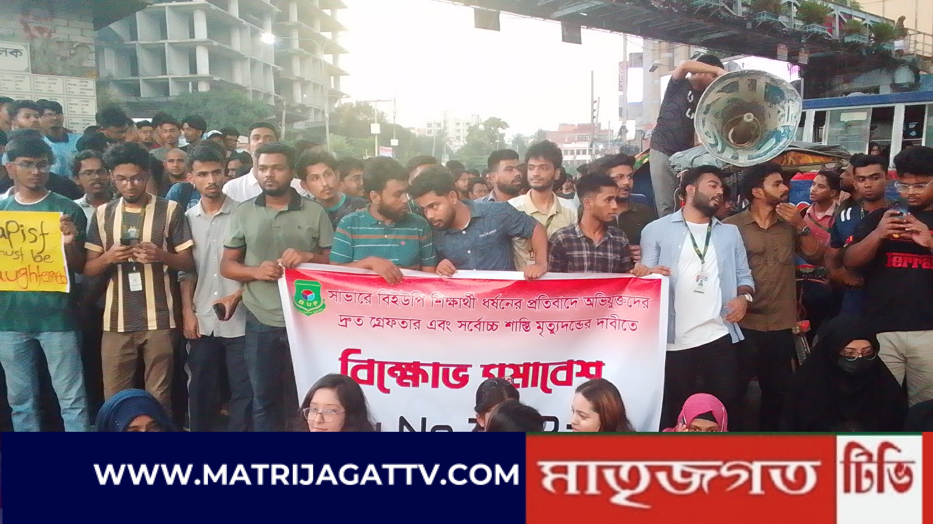 সাভারে বাংলাদেশ ইউনিভার্সিটি অব প্রফেশনালস (বিইউপি)-এর এক শিক্ষার্থীকে ধর্ষণের নৃশংস ঘটনার প্রতিবাদে রাজধানীর মিরপুরে বিক্ষোভ মিছিল করেছে সাধারণ শিক্ষার্থীরা। অভিযুক্তদের দ্রুত গ্রেফতার ও দৃষ্টান্তমূলক শাস্তি—সর্বোচ্চ মৃত্যুদণ্ডের দাবিতে শনিবার (১৮ অক্টোবর) দুপুর ৩ টার দিকে এই বিক্ষোভ মিছিল অনুষ্ঠিত হয়।