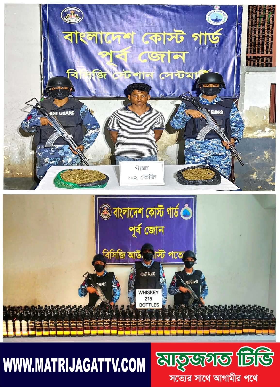 সেন্টমার্টিন পৃথক অভিযানে গাঁজা, বিদেশি মদ জব্দ; আটক ১