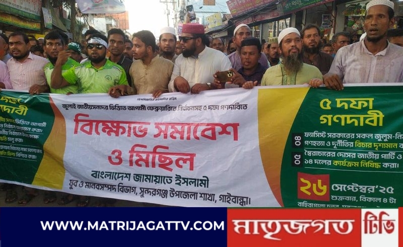 পাঁচ দফা দাবিতে উত্তাল সুন্দরগঞ্জ: জামায়াতের মিছিল-সমাবেশ