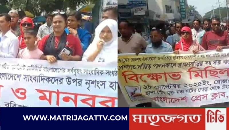ব্রাহ্মণবাড়িয়ায় সাংবাদিক নির্যাতনের প্রতিবাদে বিক্ষোভ সমাবেশ ও মানববন্ধন