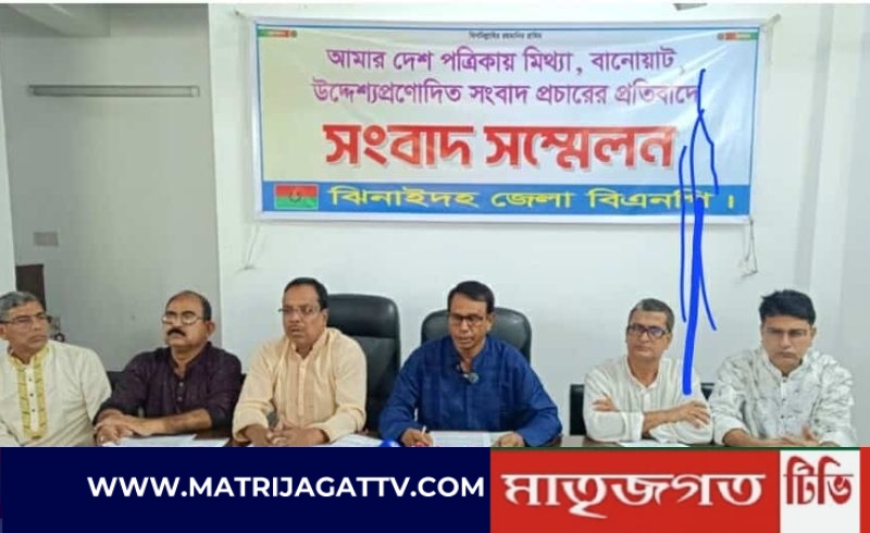 সংবাদ প্রকাশের প্রতিবাদে ঝিনাইদহ জেলা বিএনপি সংবাদ সম্মেলন