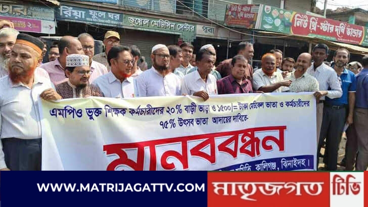 ঝিনাইদহে ৩ দফা দাবিতে শিক্ষক-কর্মচারীদের মানববন্ধন